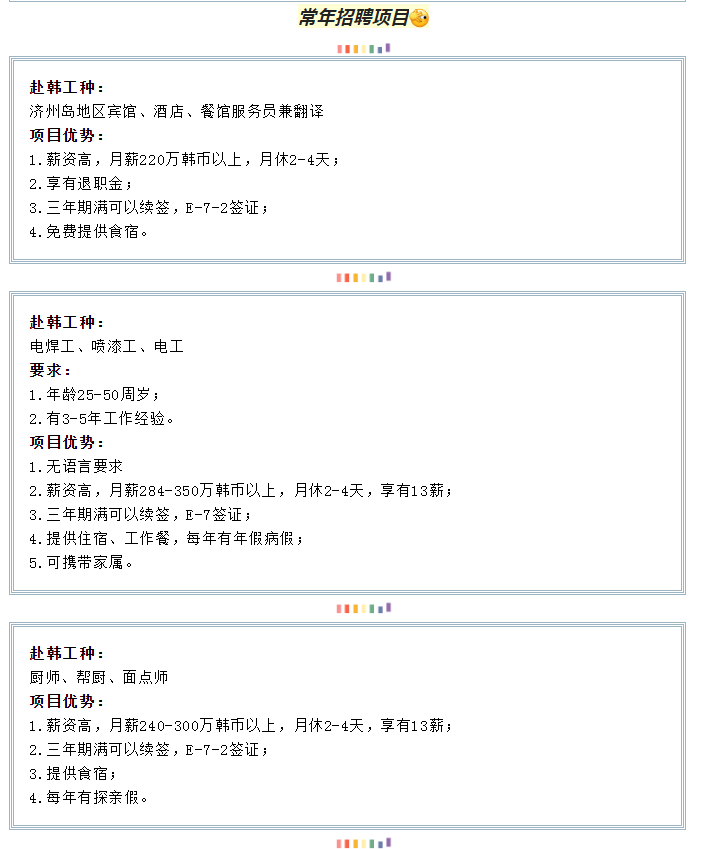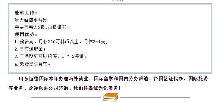 【恒德國際】韓國雇傭制項目火熱招募中
